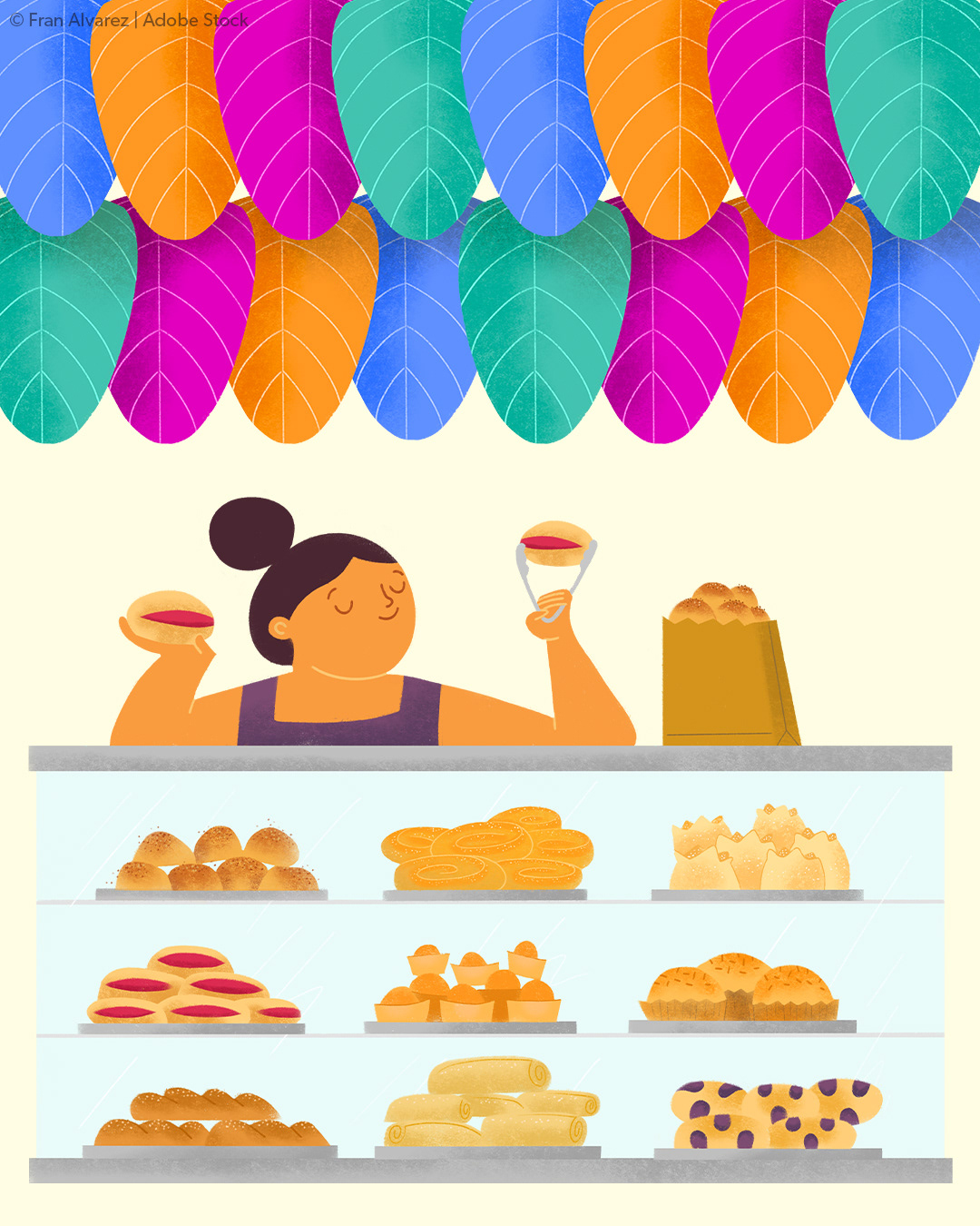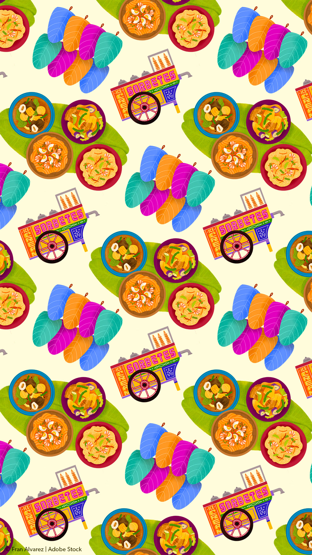 My collection of 375 images is made up of food and other elements that remind me of celebrations and sharing a meal with others. I made a mix of spot drawings, lettering, and seamless patterns.