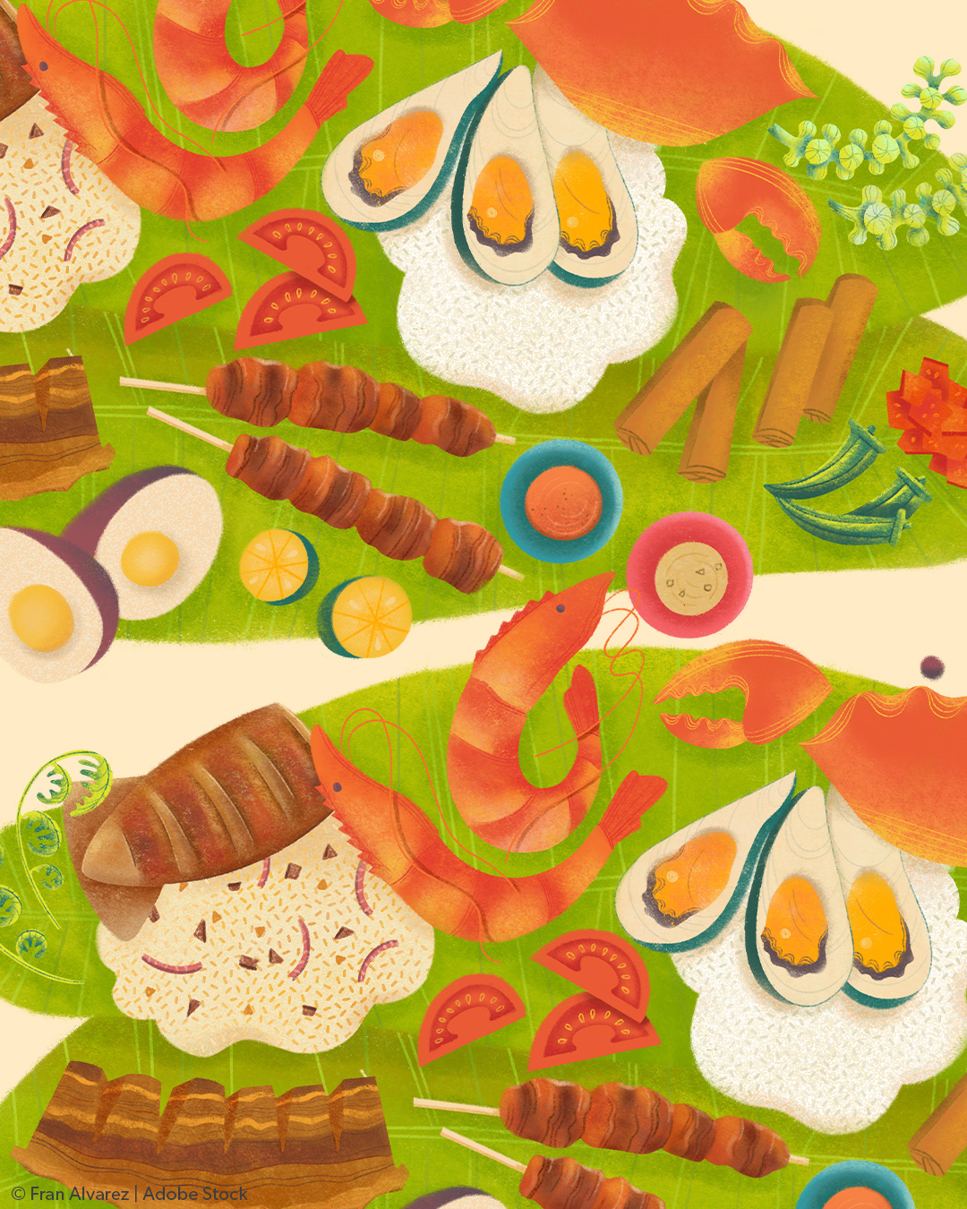 As if I needed another reason to stare at and draw food, I chose to combine two of the briefs: Taste of Heritage and Family Life, because the two are inseparable in the Philippines! Here, where we greet everyone we meet with "Kumain ka na?", food is not simply a source of nourishment but also a love language that naturally brings people together. The default serving size of almost all Filipino dishes is for sharing.