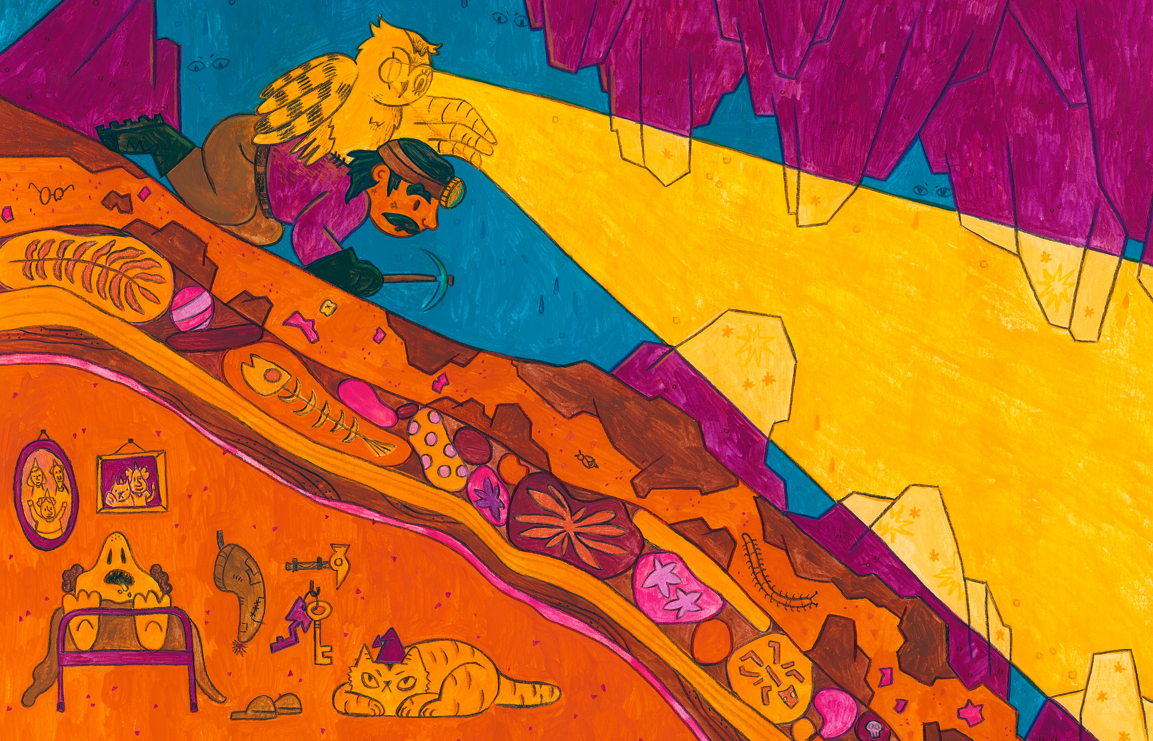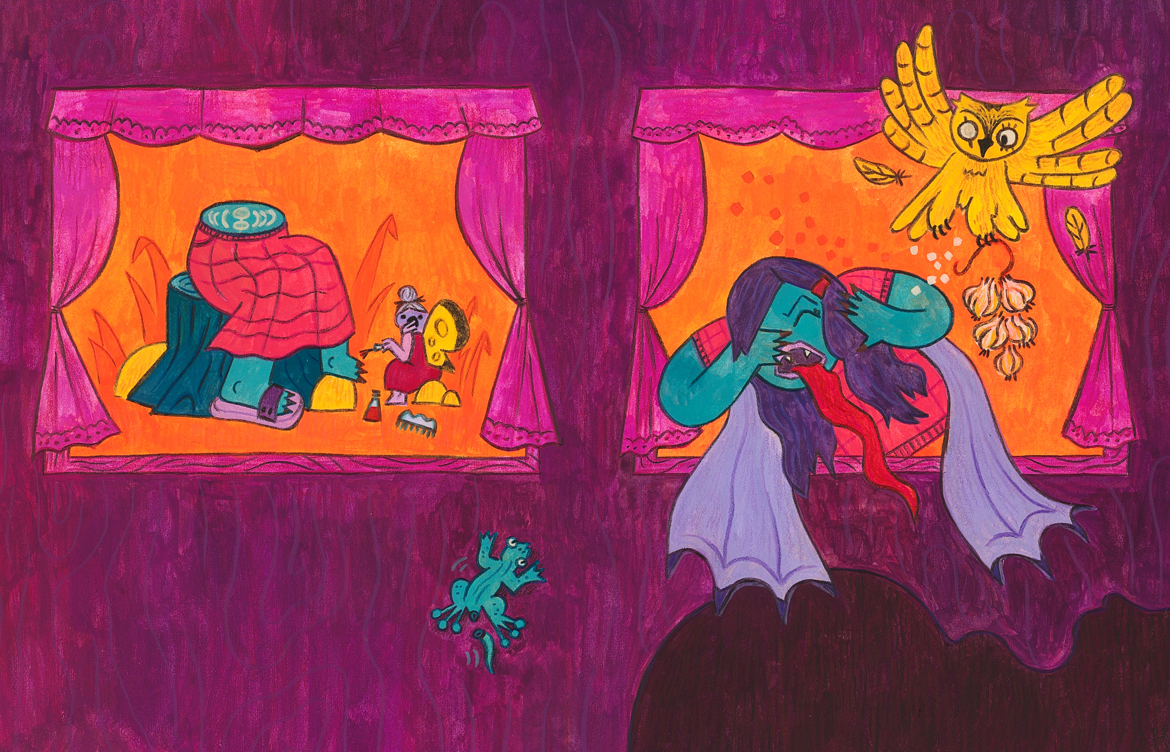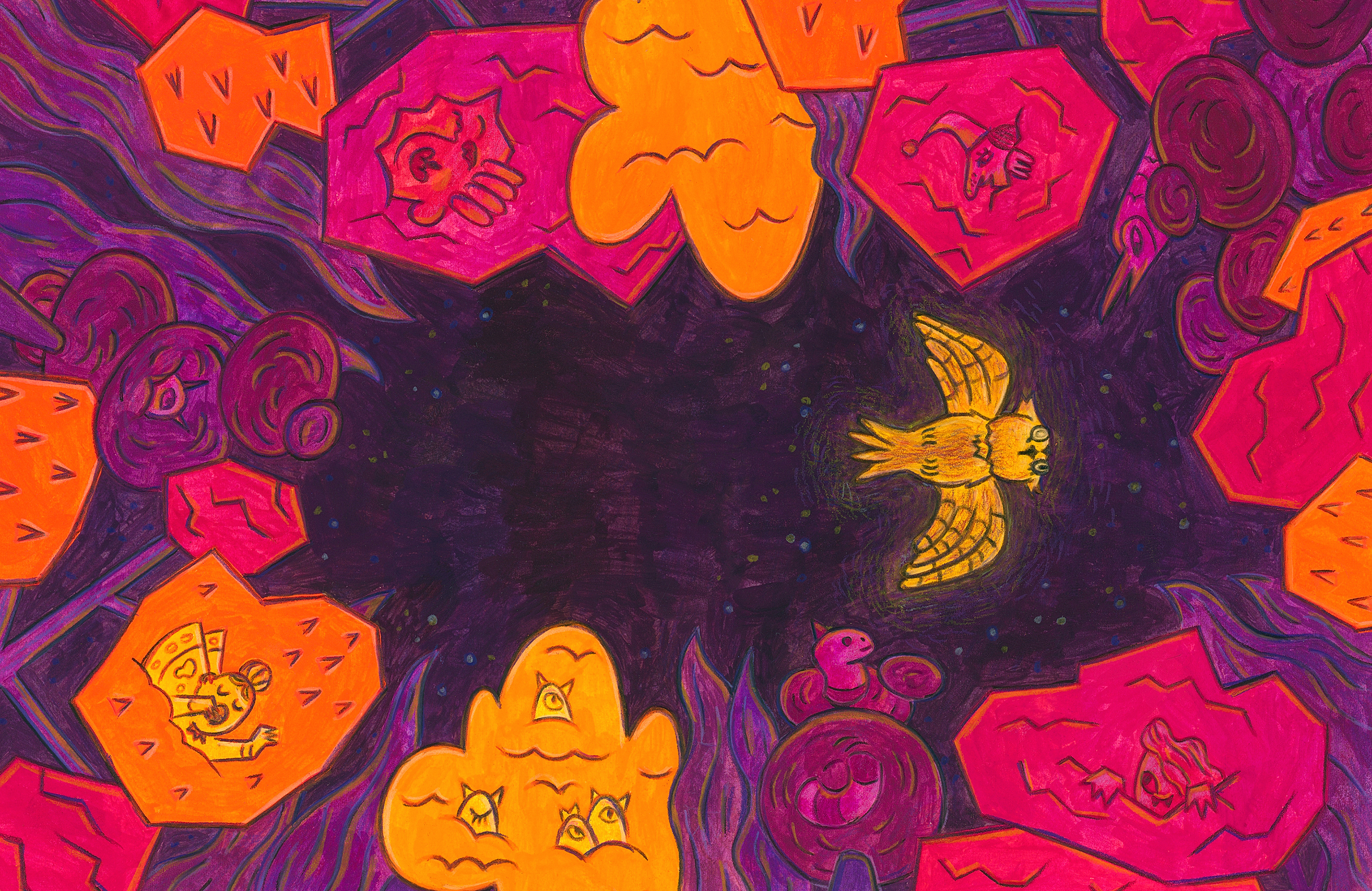 All artworks were made using acrylic, colored pencils, and graphite.