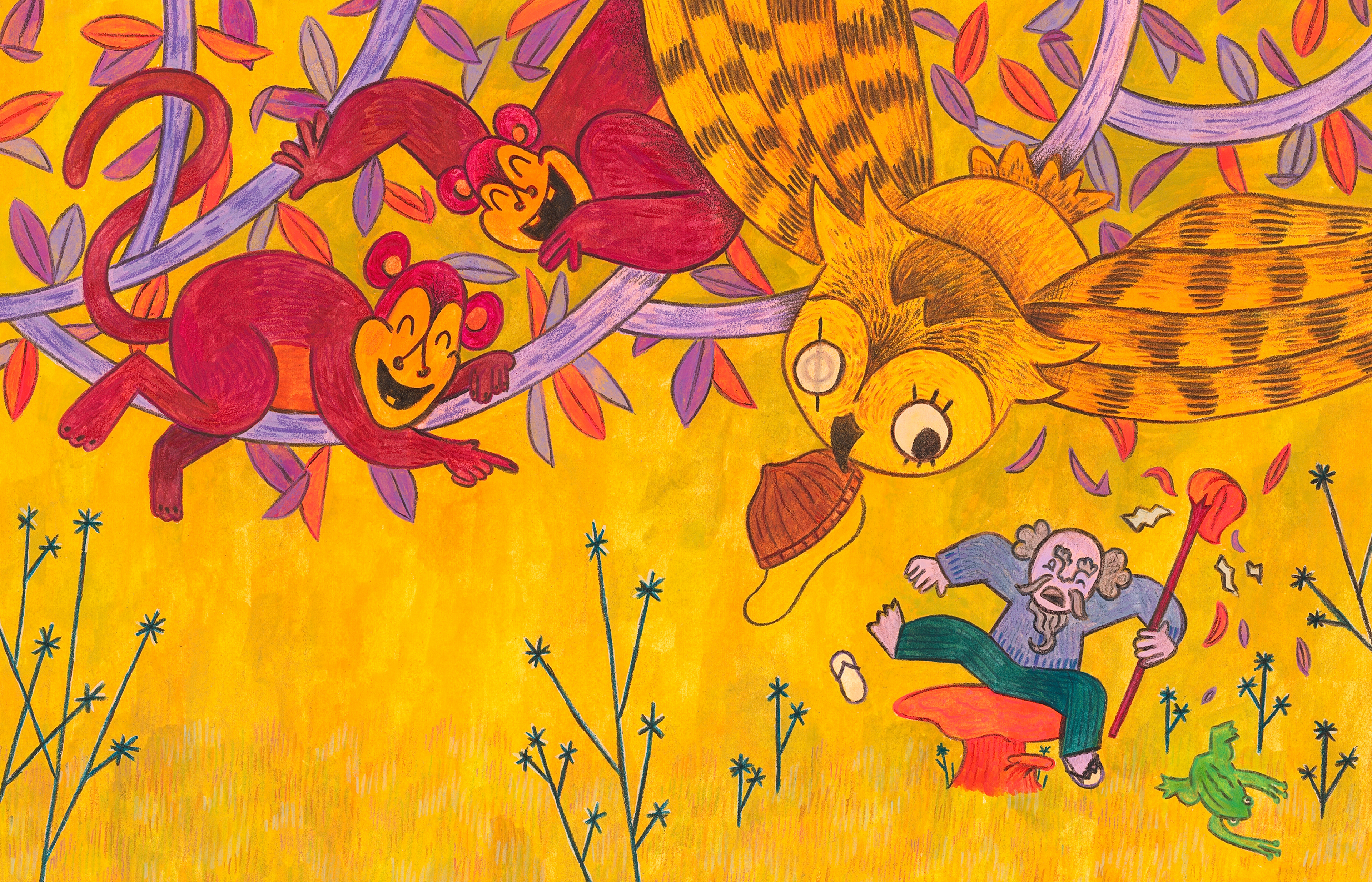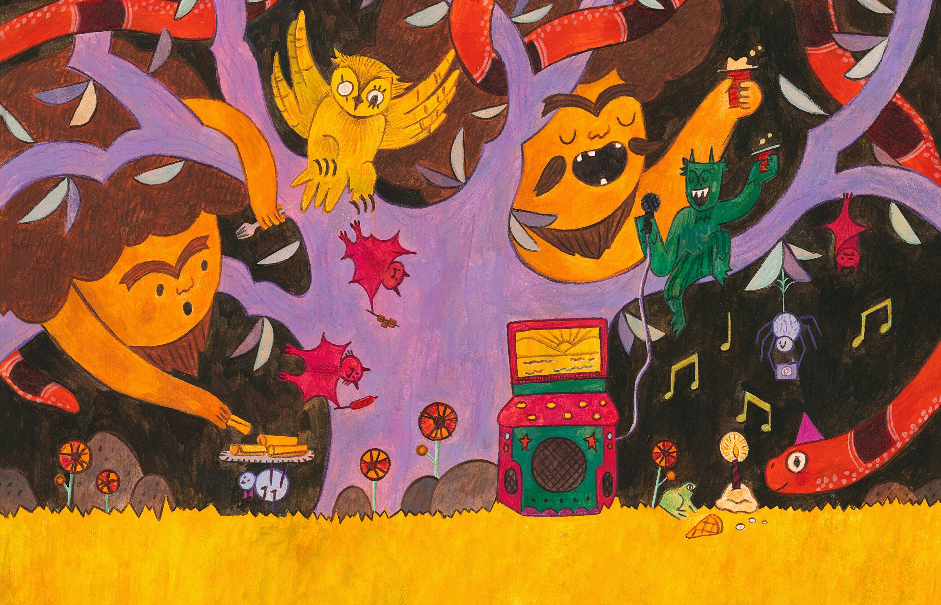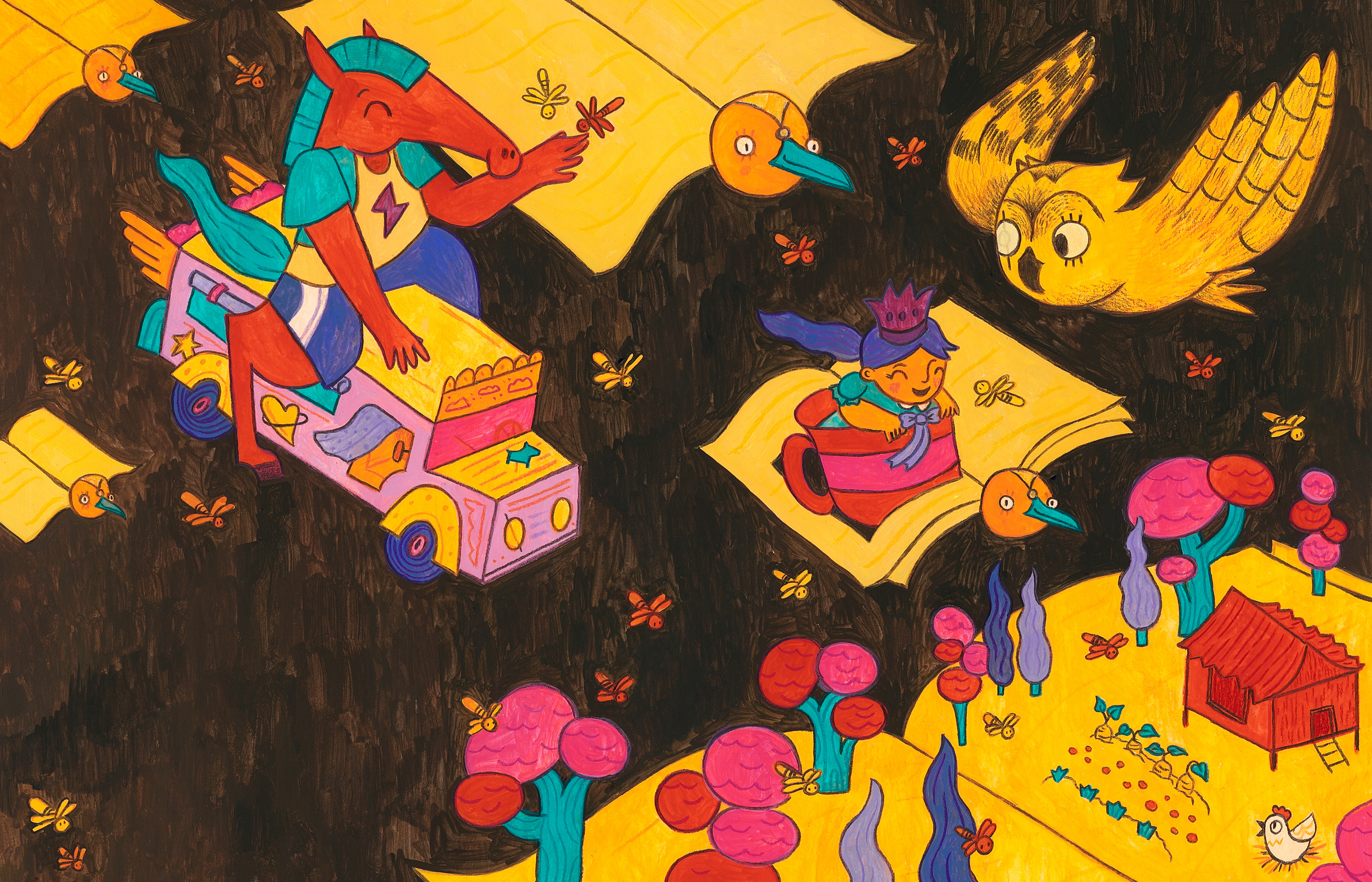 All artworks were made using acrylic, colored pencils, and graphite.