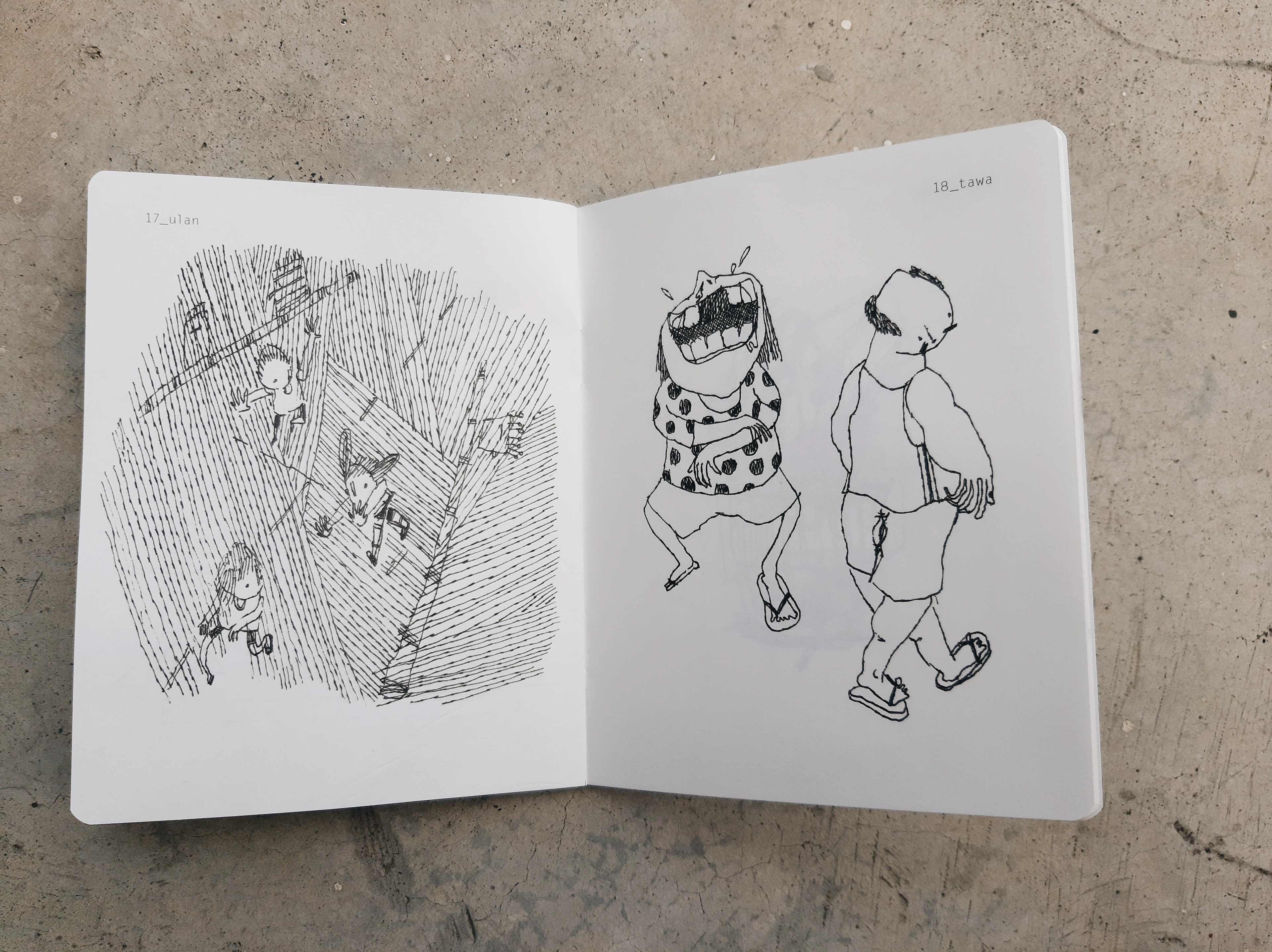 Araw Araw ("everyday" in Filipino) is a zine of compiled daily drawings from October 2019, based on Filipino word prompts by Ang Ilustrador ng Kabataan and inspired by my own childhood memories.