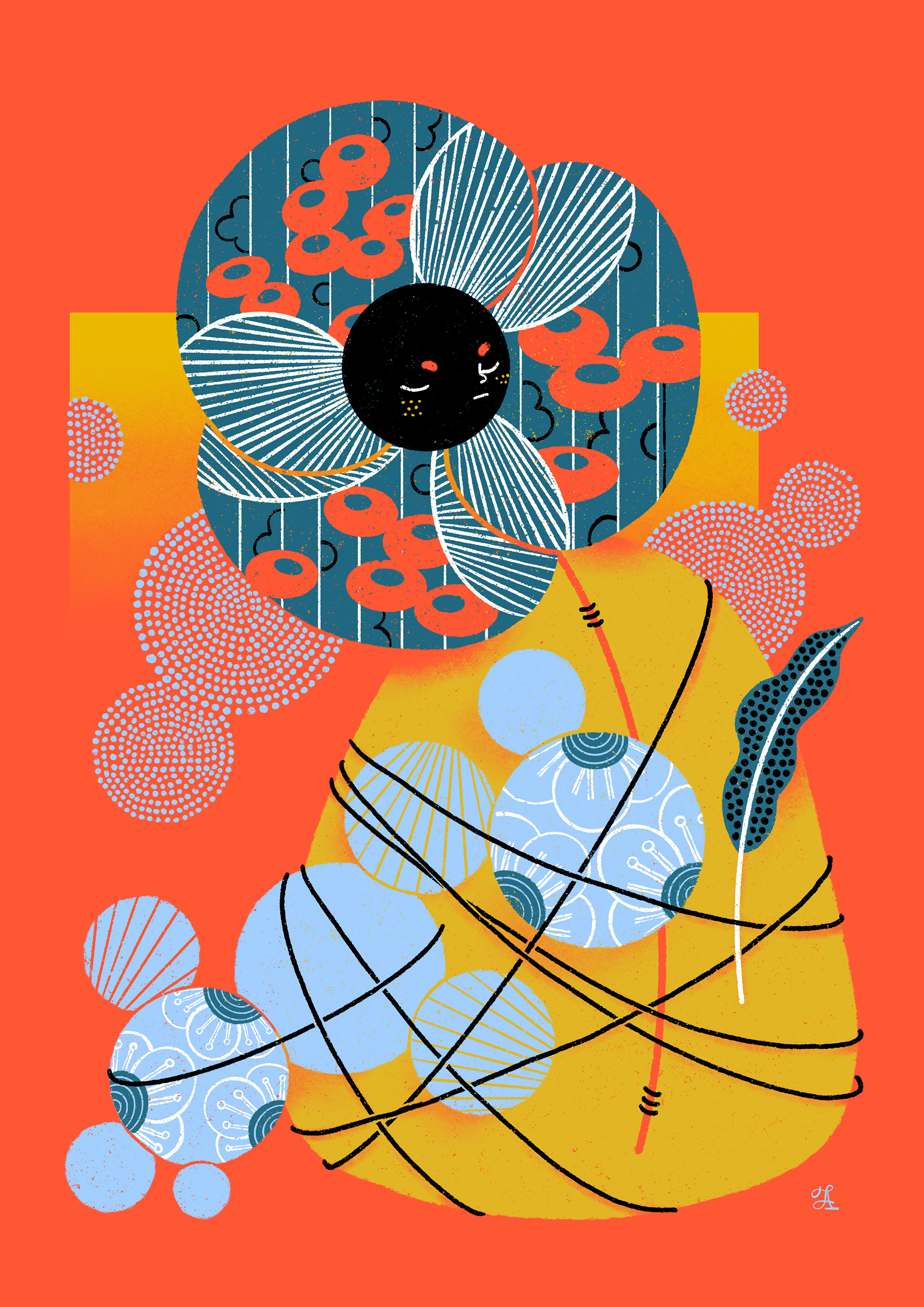 In response to the group's theme "gathering", my pieces are called Should I Stay? and Should I Go? respectively. My drawings are based on the internal dialogue I have whenever I'm in a social event where I feel I've stayed long enough, but nobody's leaving yet. Should I stay? Should I go? Asking these questions like some kind of meditative chant, hence the still life floral arrangement, with a nod to my newfound interest in Japanese woodblock prints.