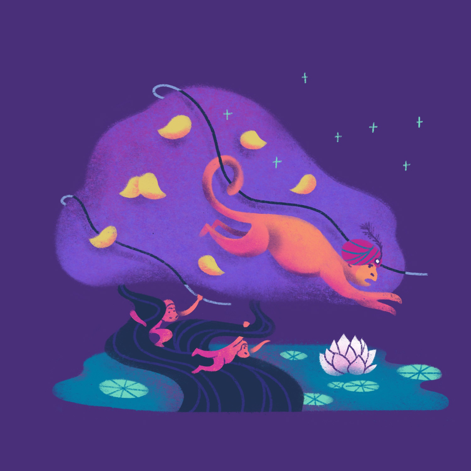 I used a secondary color palette and motifs from Indian artworks and textiles as accents to set the context. The lotus which symbolizes Buddha appears on all the covers as well. For certain animals, I chose to feature species that are from India, such as the Shikra for the hawk and the Indian Star Tortoise.