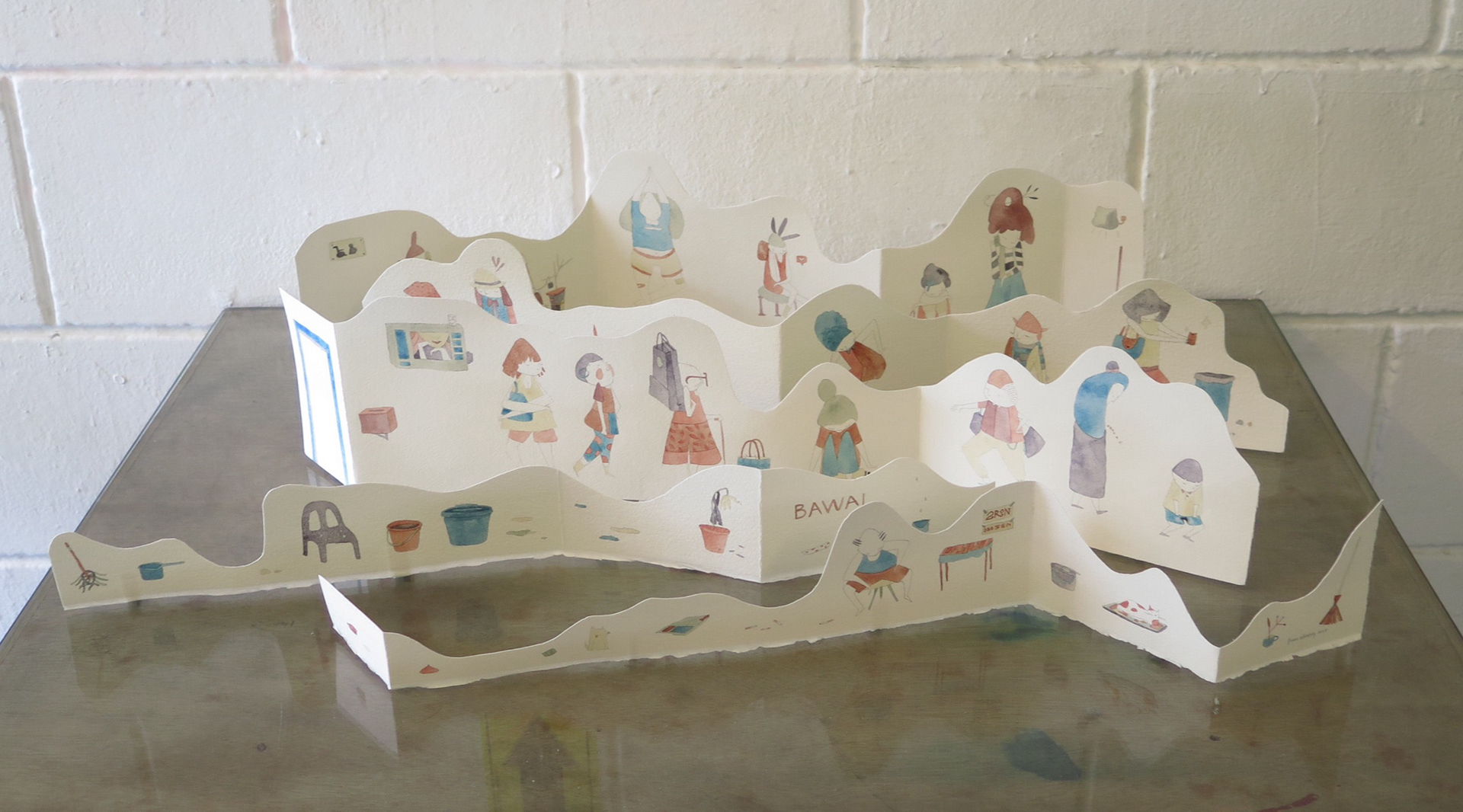 watercolor accordion piece for the bathroom-themed group exhibit Pang Hui Ba Ho at Post, Cubao