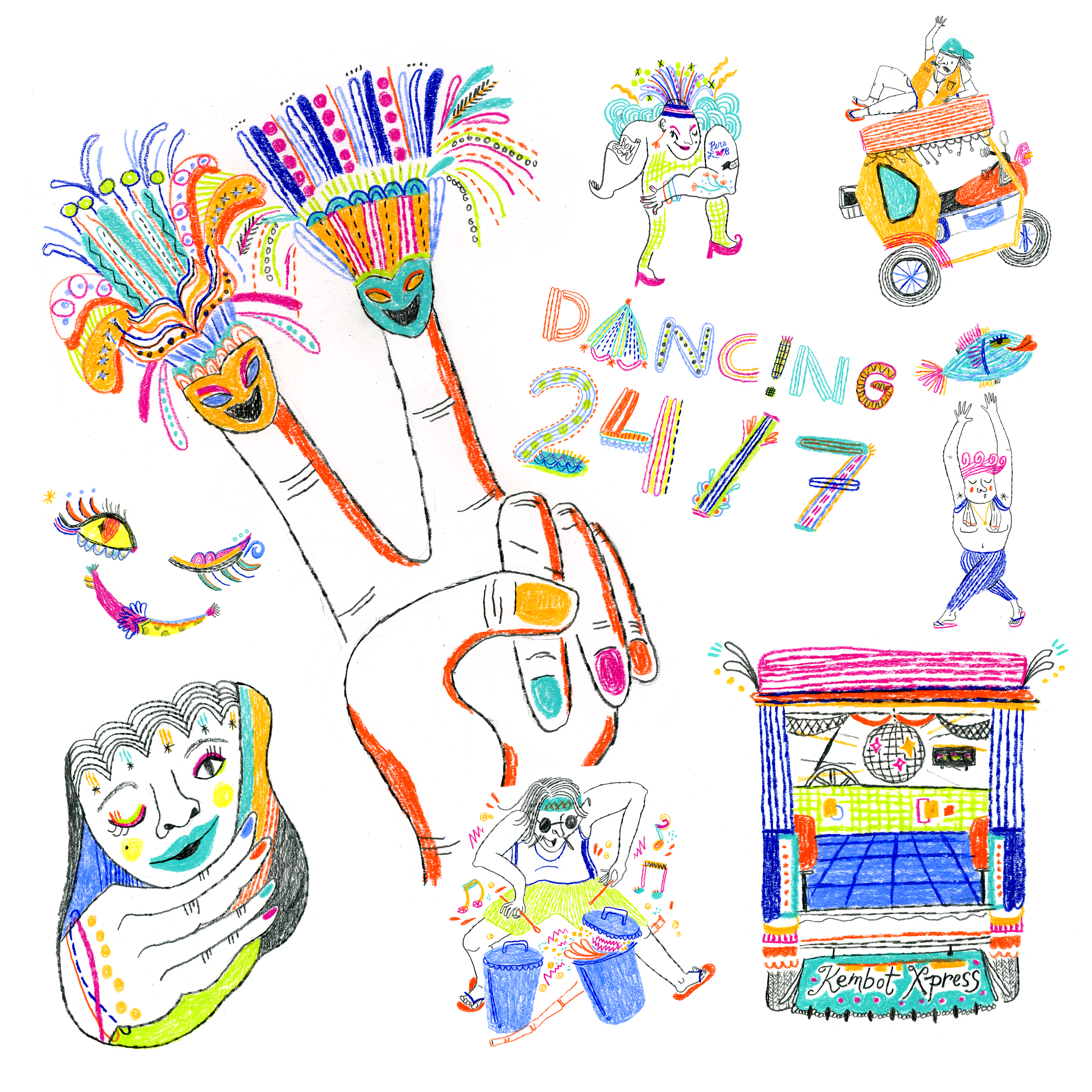 I made some drawings for UNIQLO's UTme! The Art of the Philippines x Fiesta collection. My shirt design shows the color and energy of the day-to-day activities of people in the neighborhood, with a palette and some additional elements inspired by Bacolod's Masskara Festival.